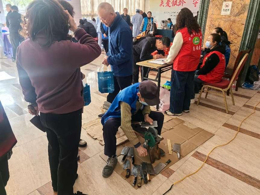 活動現(xiàn)場氣氛溫馨。來自市中心醫(yī)院、中南口腔醫(yī)院、德元升中醫(yī)館及鄂都光明眼科的專家們憑借專業(yè)知識和豐富臨床經(jīng)驗,現(xiàn)場開展健康咨詢和診斷,為老人們提供科學(xué)健康養(yǎng)生指導(dǎo)。物業(yè)黨支部精心安排了免費理發(fā)、磨刀等生活便民服務(wù),讓老人面貌煥然一新,生活器具也“重?zé)ㄤh芒”,贏得了老人們的一致好評。