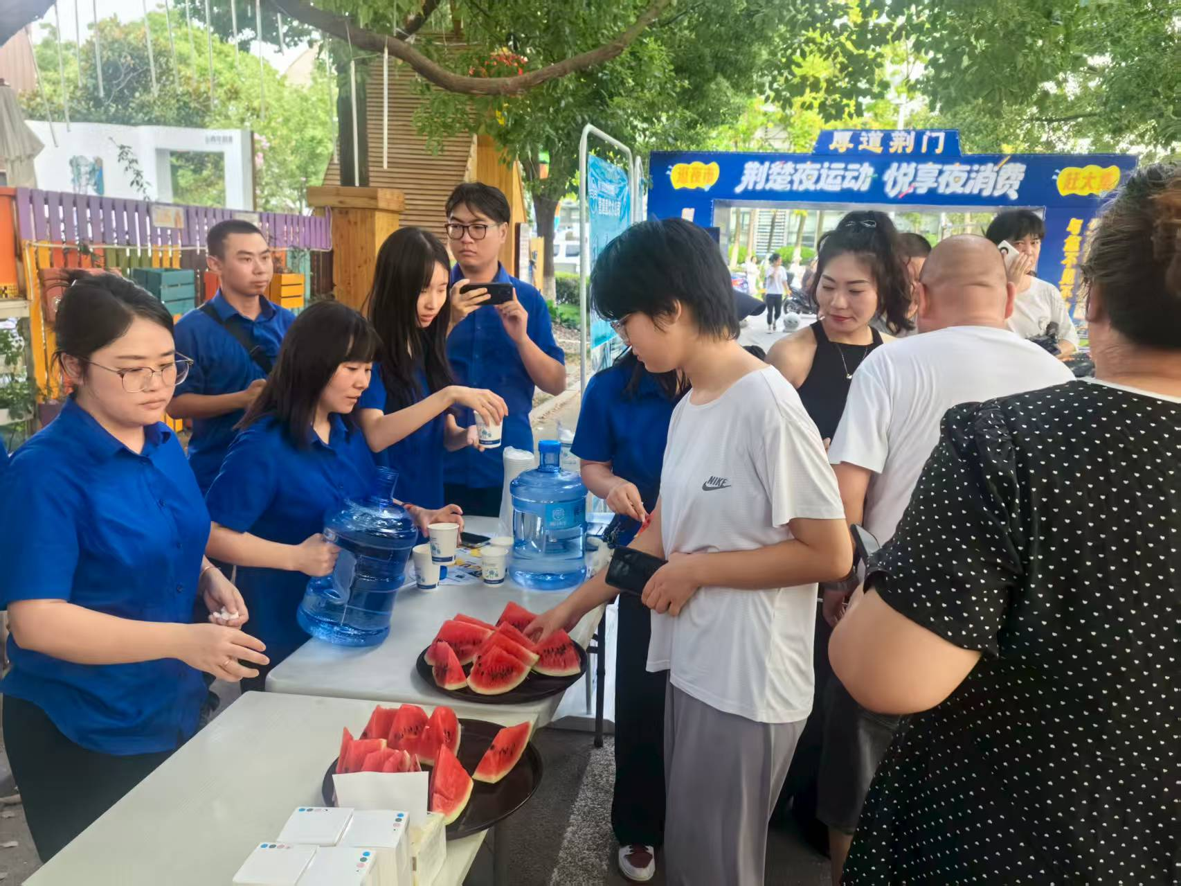 7月29日晚,市水務(wù)集團慧泉房產(chǎn)公司攜手龍泉直飲水公司,帶著清涼好禮,結(jié)伴奔赴生態(tài)運動公園“逛夜市,趕大集”。